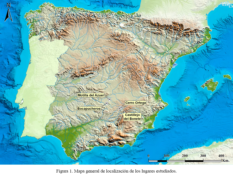 Castillejo del Bonete (Terrinches), Cerro Ortega (Villanueva de la Fuente), la motilla del Azuer (Daimiel) y Bocapucheros (Almagro) son enclaves de la provincia de Ciudad Real que se encuentran en el borde meridional de la Meseta castellana y fueron utilizados en el IV y III milenios a.C. con fines funerarios (fig 1). No se debe pensar que fueron meros cementerios. Como se expondrá más adelante fueron lugares complejos, con múltiples aspectos que se encuentran pendientes de explicación.