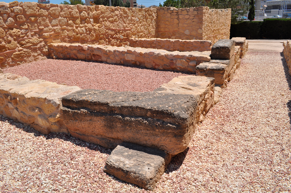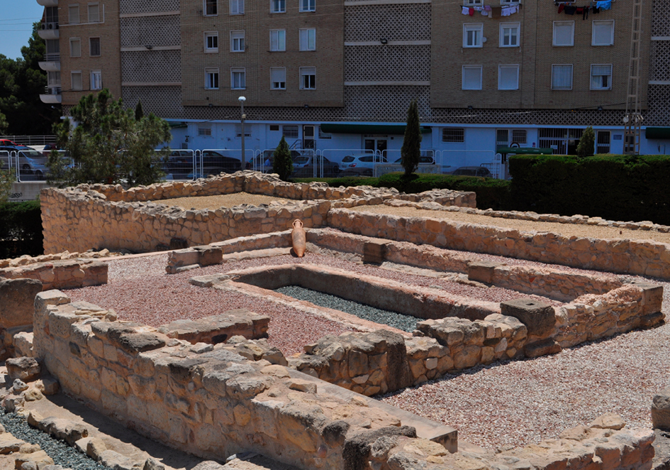 De origen cartaginés, registra la primera intervención edilicia de corte romano en el primer cuarto del s. I a.C. con la construcción de una nueva muralla de cariz militar, que sigue exactamente el circuito púnico previo, motivada por las crisis bélicas de finales de la República (Olcina y Pérez 2003: 91-108; Olcina 2006: 109). Su posición estratégica entre Ebusus, Dianium y Carthago Nova, fue determinante en su reocupación, convirtiéndola en un importante enclave en las rutas de navegación (Olcina et al. 2015: 255-257).