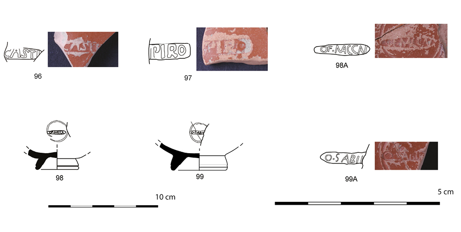 Previously, in the Republican period, in the assemblage of Campanian ware, it was also possible to identify five pieces bearing graffiti (Alves 2010: 80-81). The author distinguished, from a set of incisions with no apparent logic, some examples where could be seen letters, such as A or X.